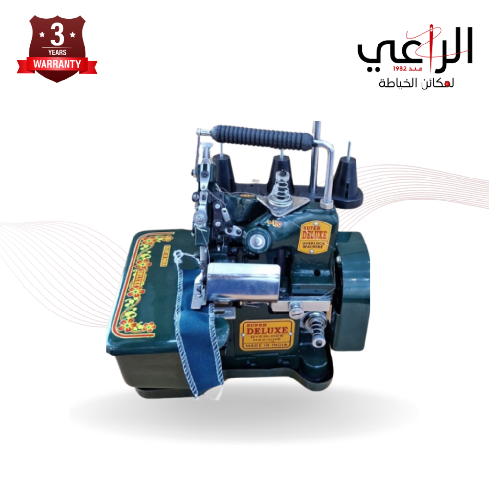 احصل على ماكينة السرفلة الهندية الأصلية من Deluxe ذات الثلاثة خيوط، الآن في متجر الخياطة الراعي – الخيار المثالي للخياطين والمشاغل والمصممين الباحثين عن تشطيب متقن وحواف أنيقة ومثبتة للأقمشة.