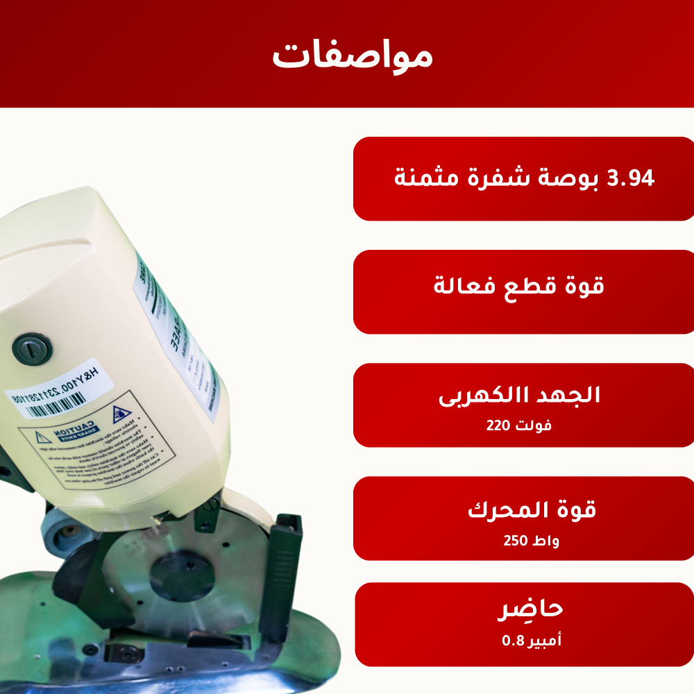 نقدم لك مقص كهربائي للقماش سكين دائرة ، وهو أداة تساعد في عملية القص وتضمن لك نتائج دقيقة بدون أي خسائر. تتميز آلة قطع القماش سكين جولة الأداء بشفرة سكين دائرية مثمنة بقياس 100 ملم وكاربيد يميل أسفل الشفرة لقطع دقيق وفائق للأقمشة الفاخرة. احصل عليه الآن واستمتع بتجربة مميزة للقص دون أي جهد وبدقة عالية من متجر الراعي بأسعار تنافسية.