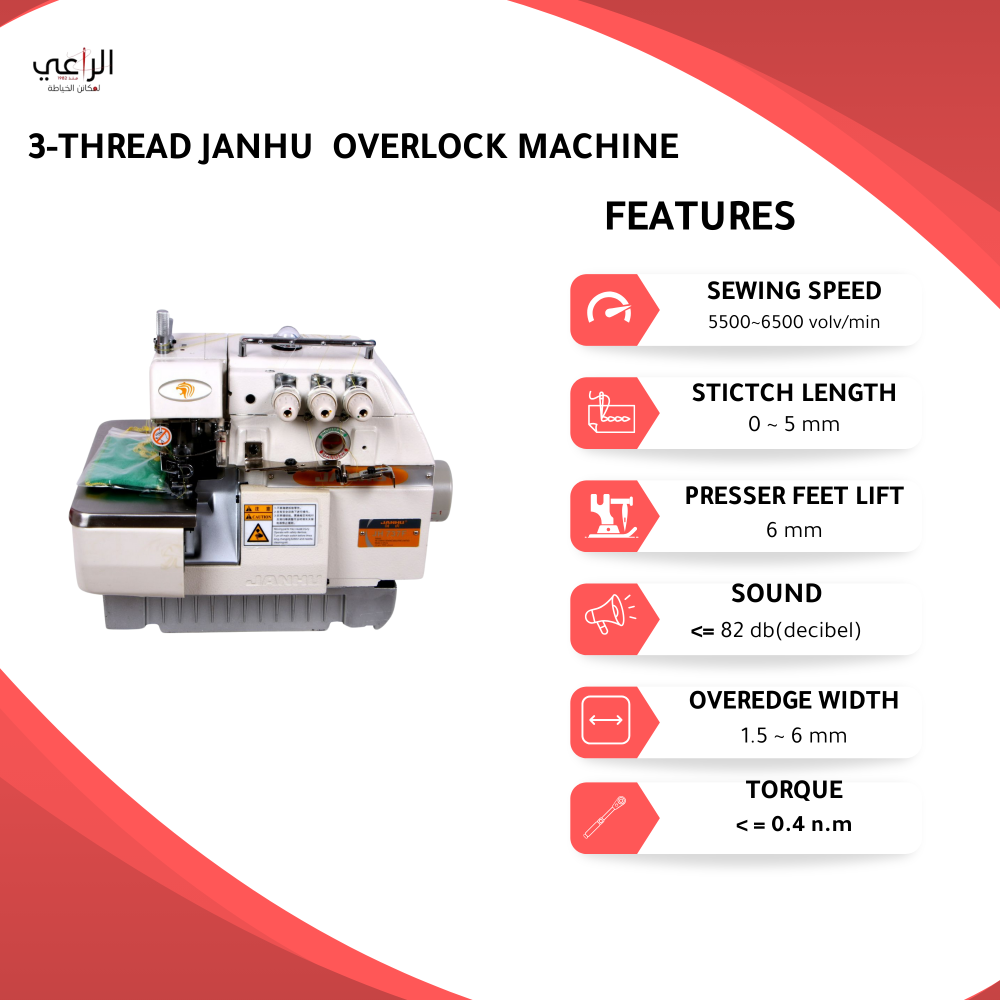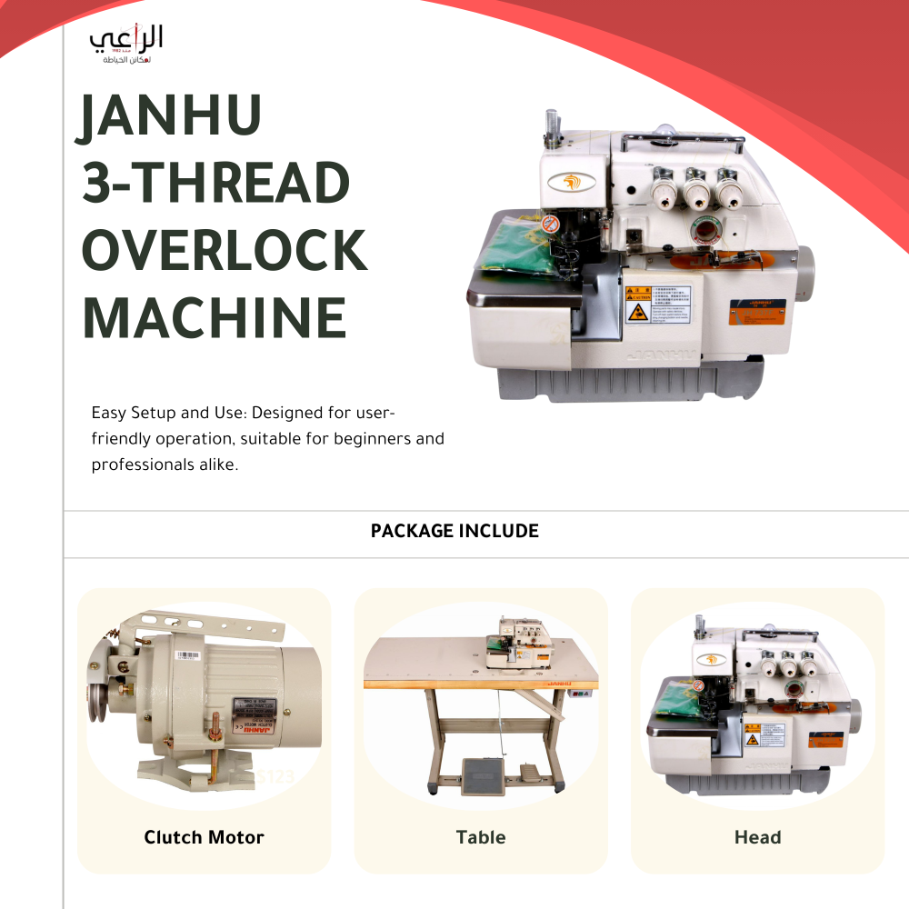 مكينة سرفلة صناعي جانهو JH-737F تأتي مزودة برأس، محرك، وطاولة، مما يجعلها الخيار الأمثل لمن يسعى للحصول على أداء احترافي وموثوق في عالم الخياطة.
