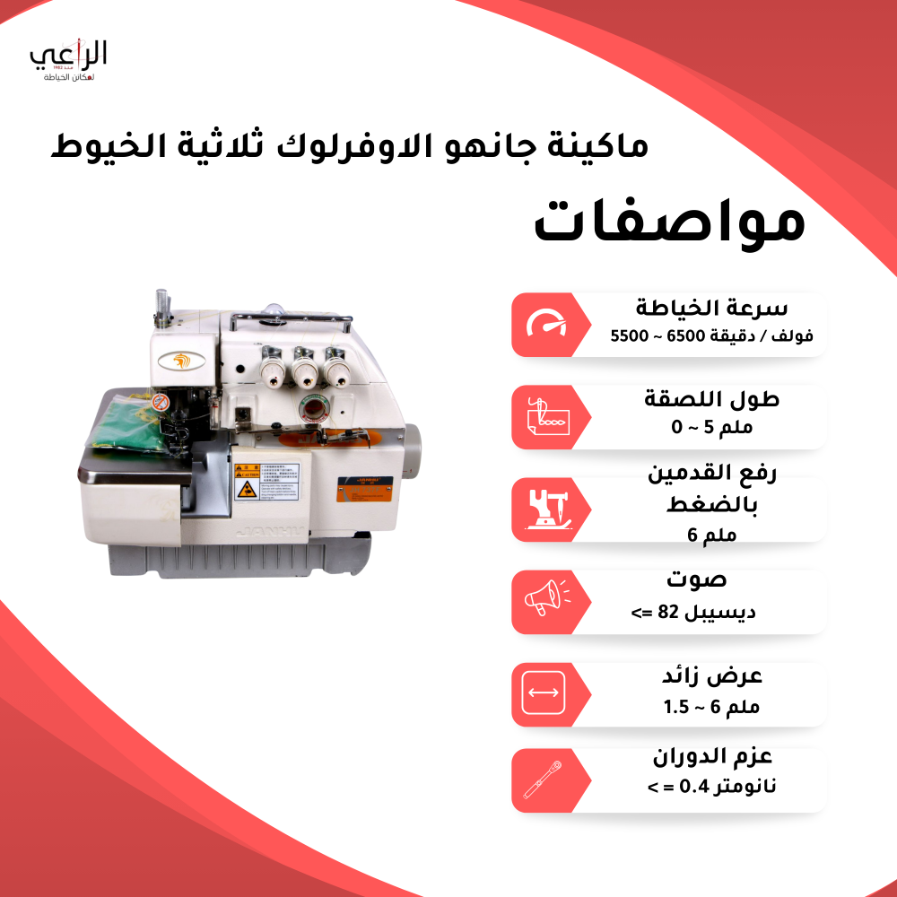 - سرعة الخياطة: 5500-6500 غرزة في الدقيقة