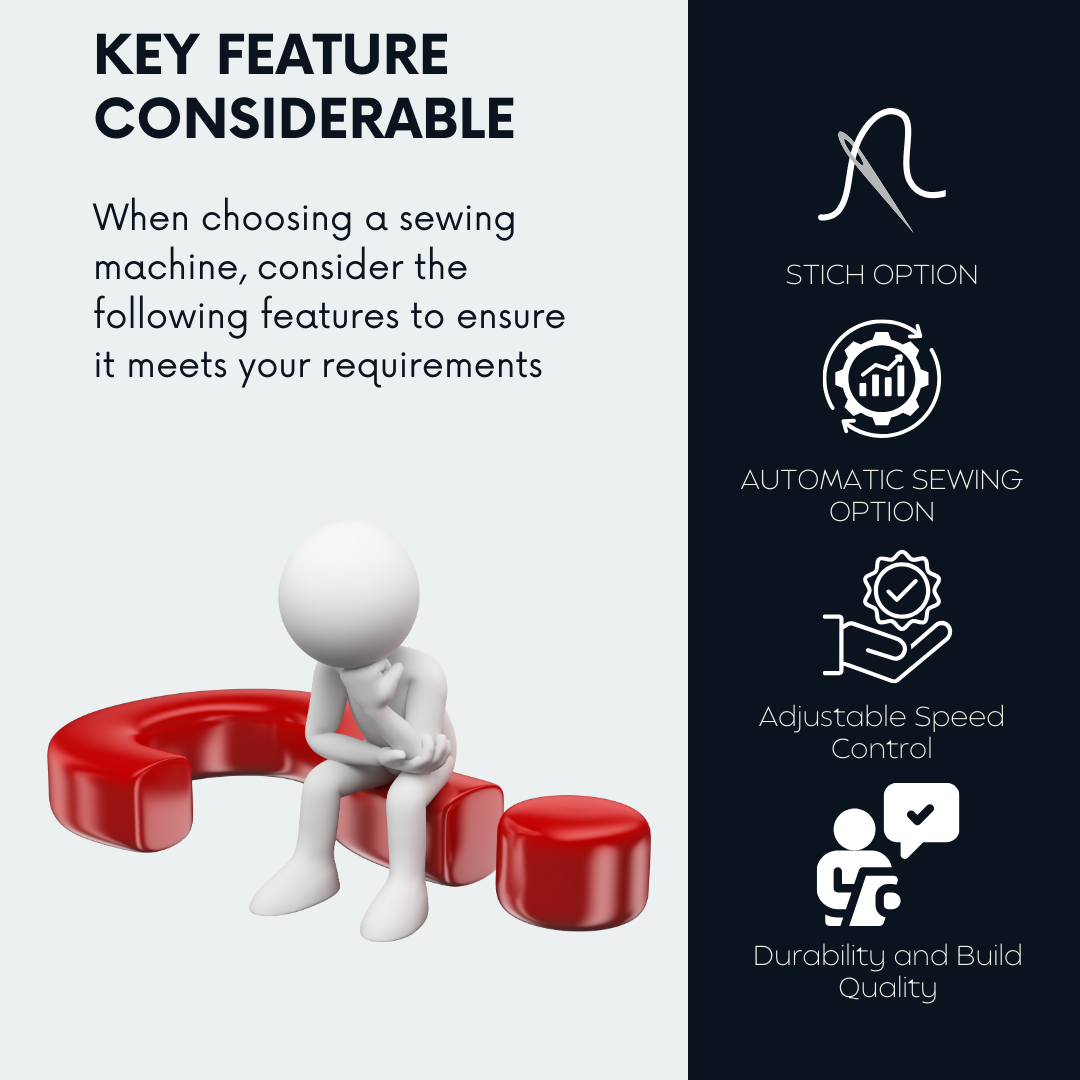 When choosing a sewing machine, consider the following features to ensure it meets your requirements: